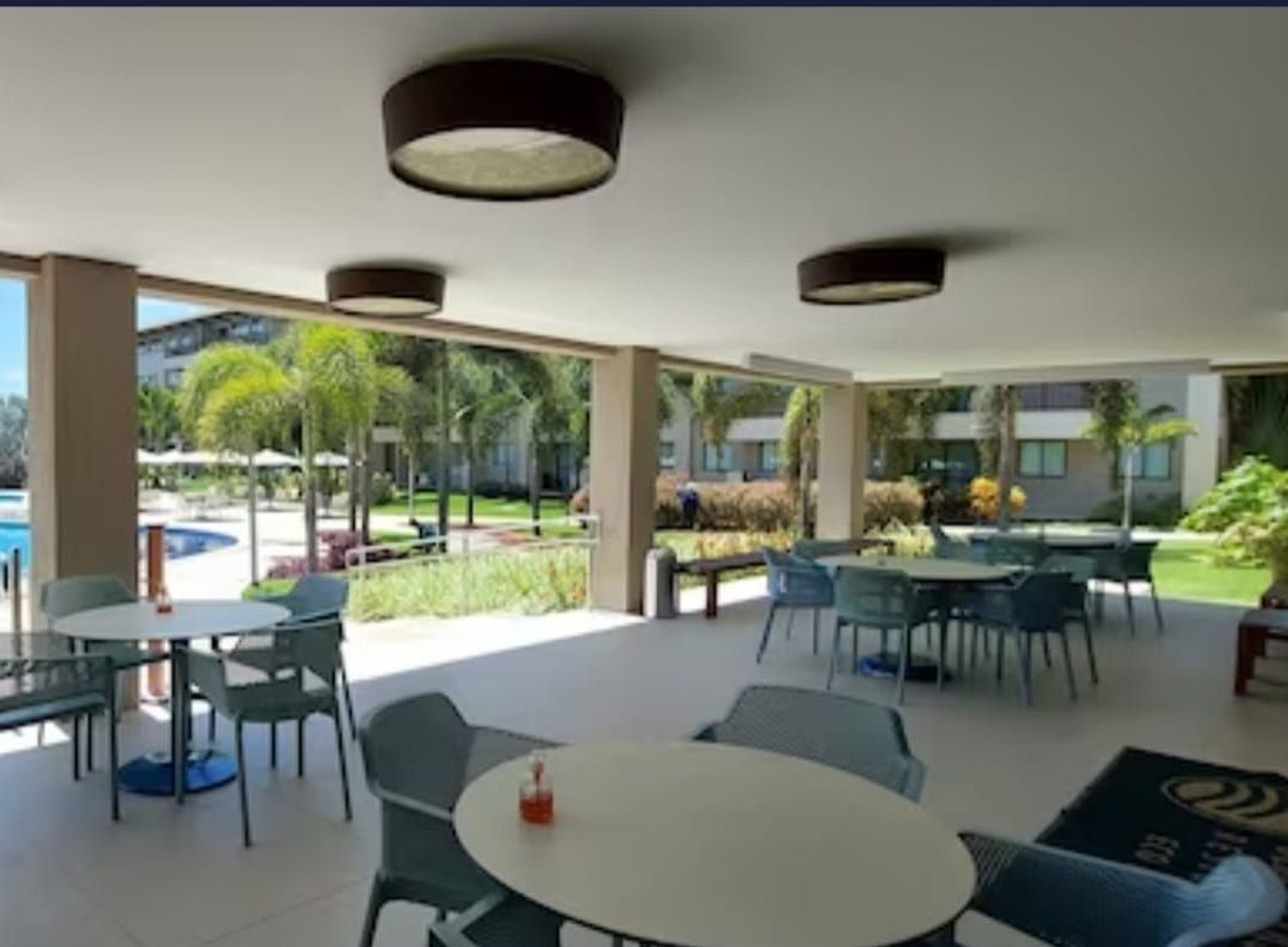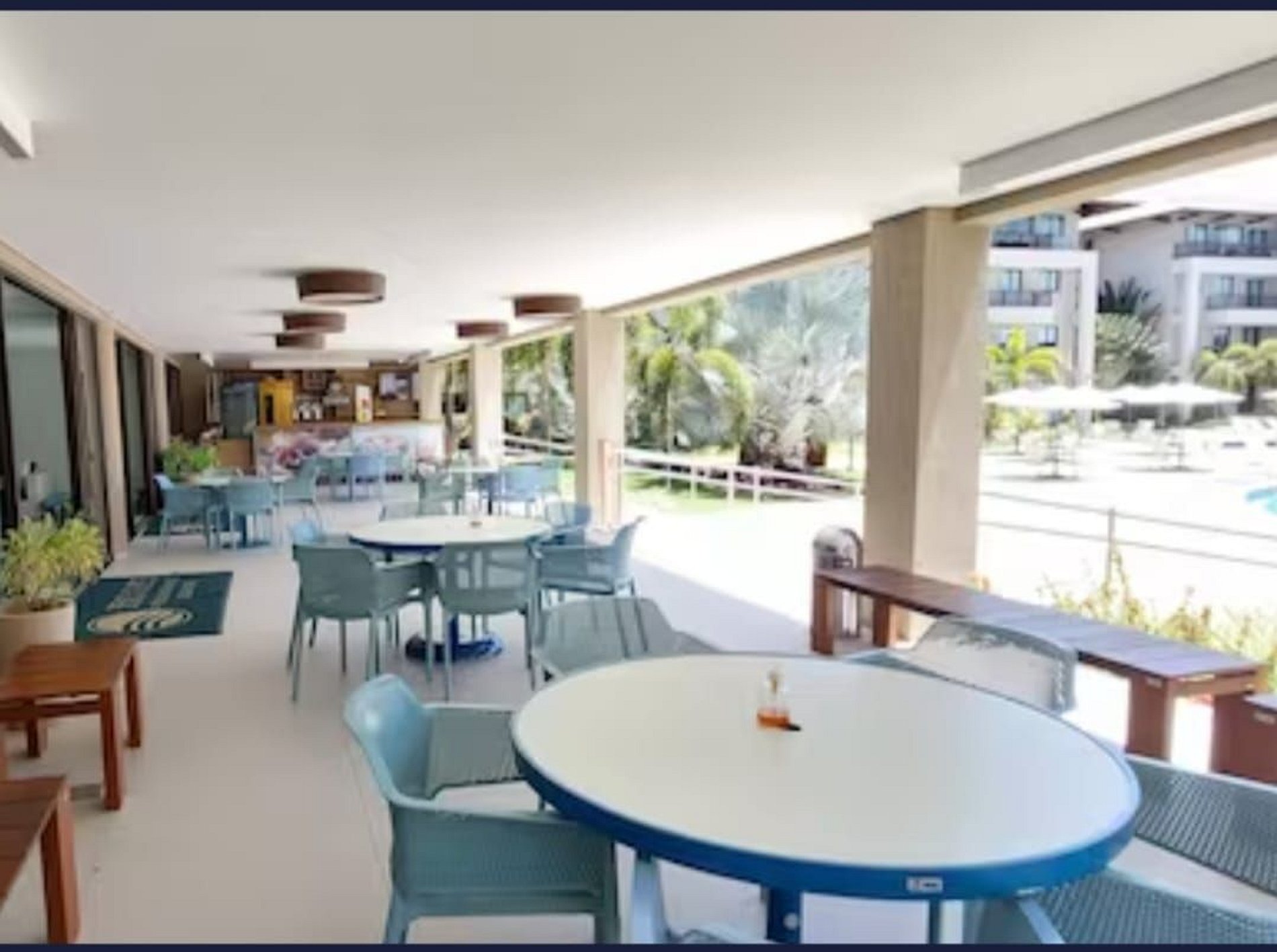 Bar e restaurante com culinária Beijupirá e serviço na piscina e no deck de praia