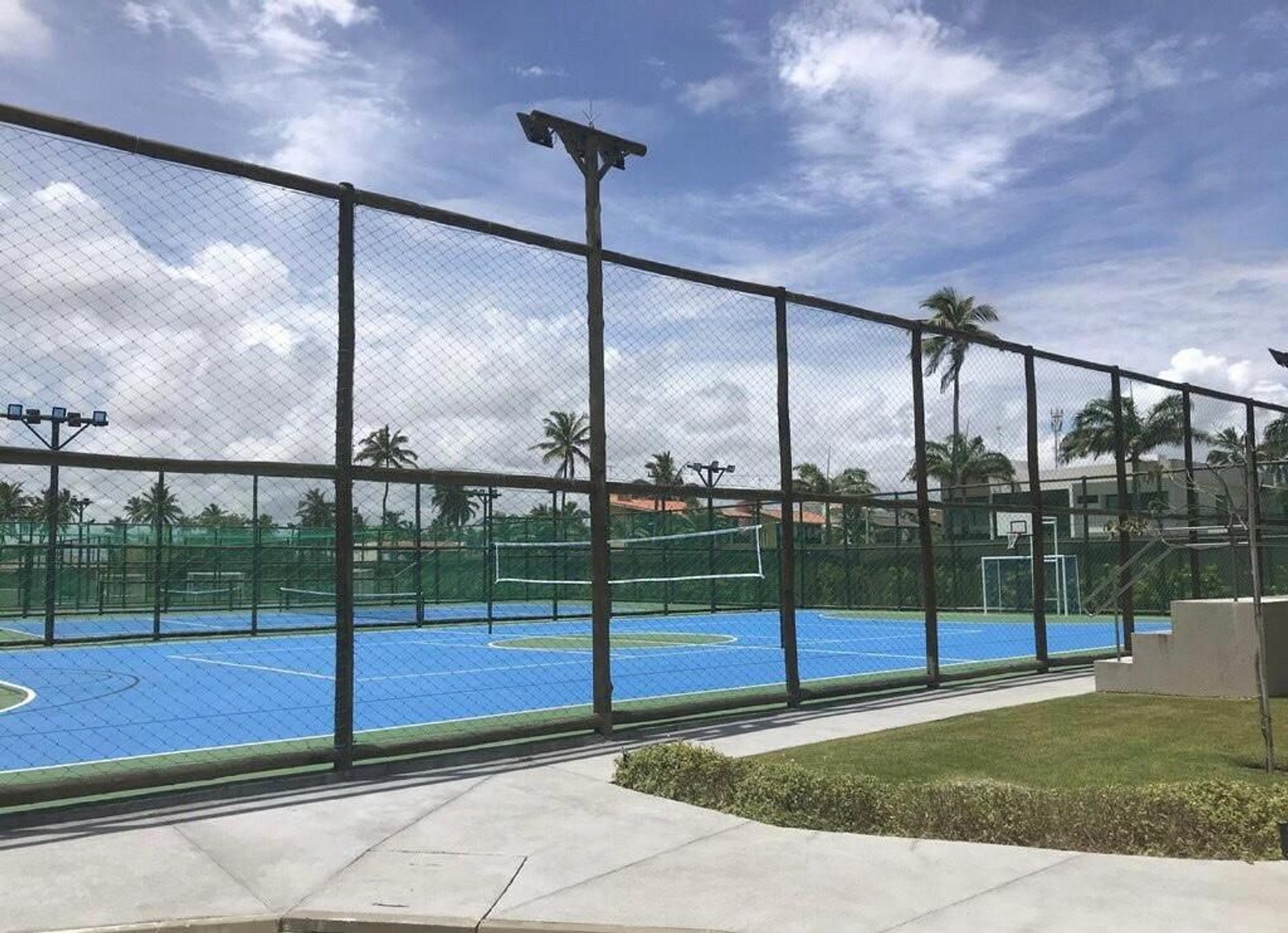 Quadras de tênis, quadras poli-esportivas, academia fitness e sauna