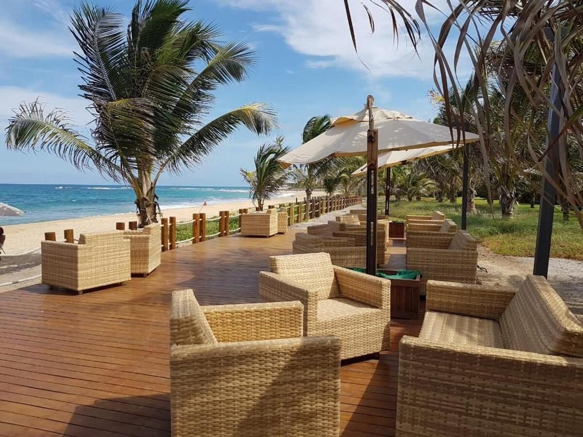 Deck de praia e praia pé na areia