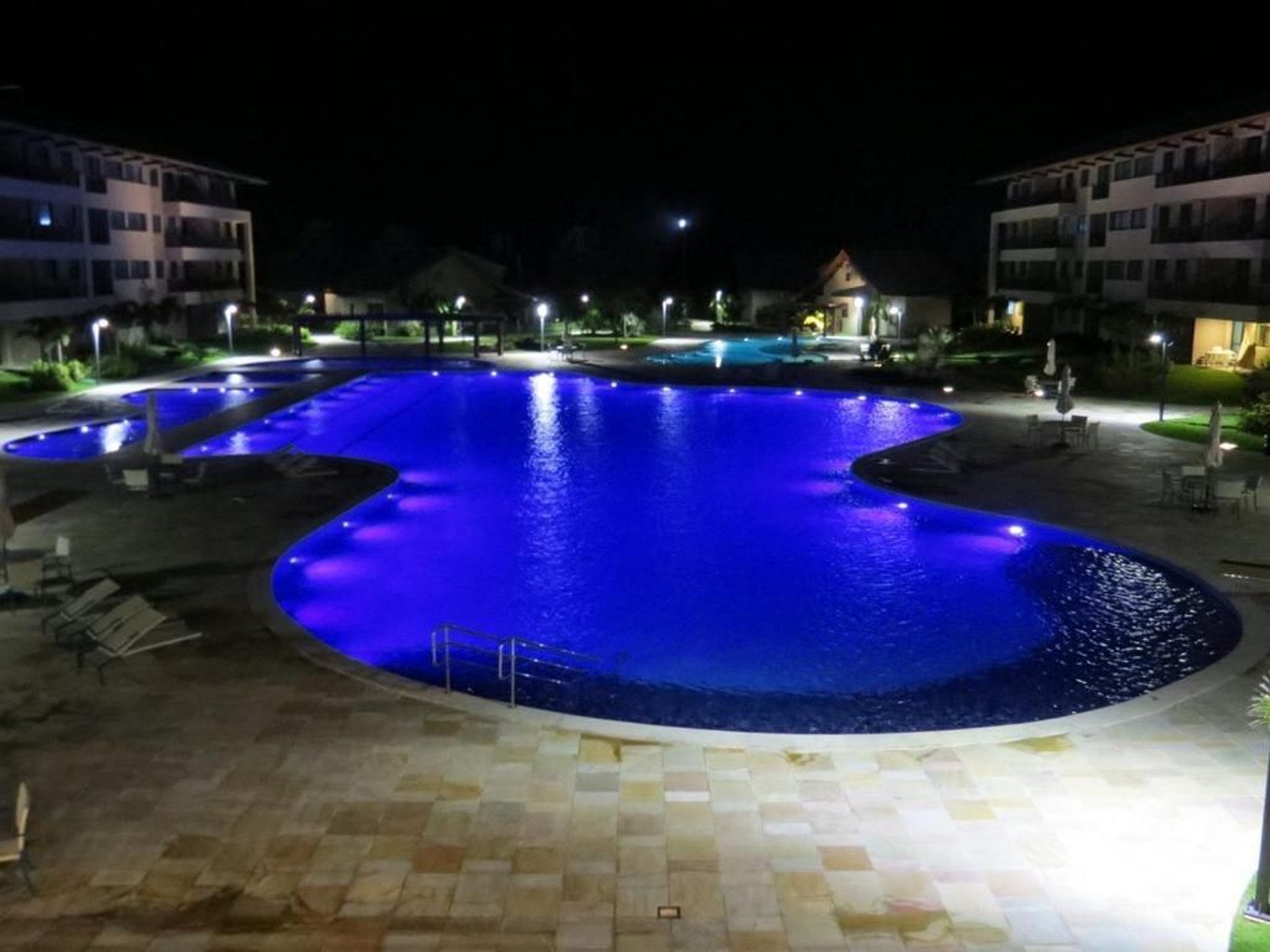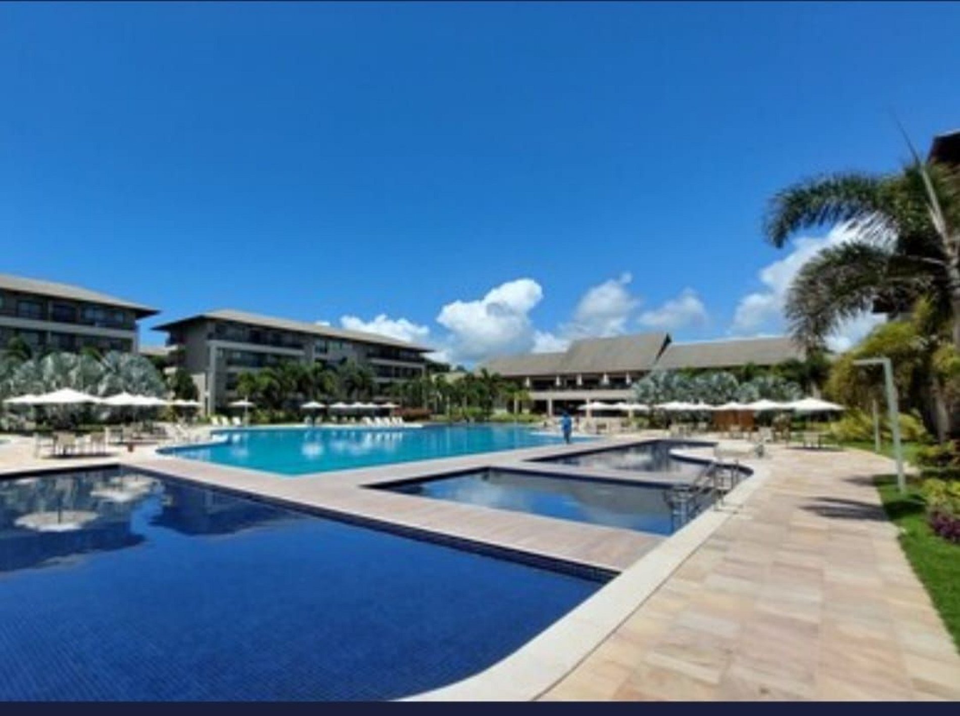 3 piscinas de água doce, 1 de água salgada e 1 jacuzzi